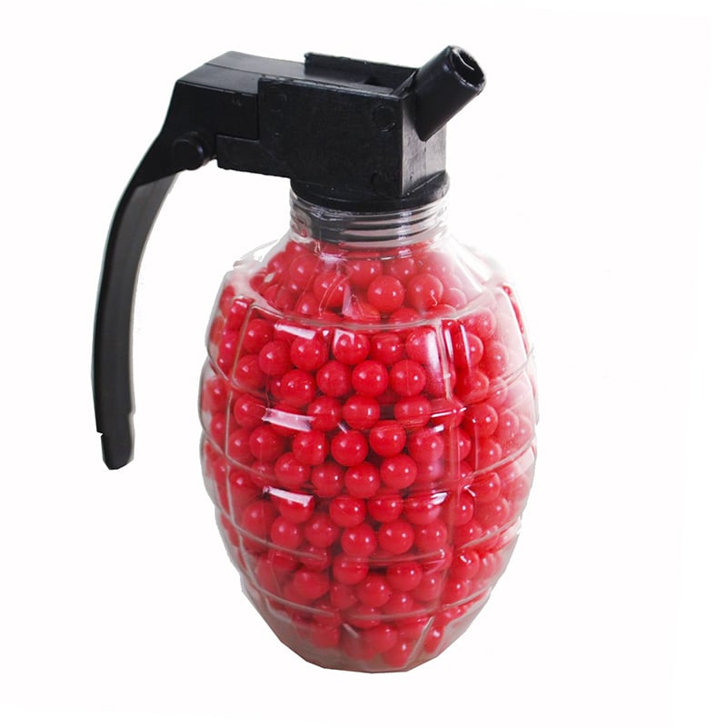 1000 Πλαστικές Μπίλιες 6mm σε Δοχείο Εύκολου Γεμίσματος για Αεροβόλα Όπλα σε Σχήμα Χειροβομβίδα - Κόκκινες