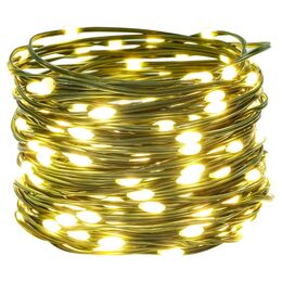 Πρόκειται για μια γιρλάντα 10 μέτρα + 5 μέτρα καλωδίου τροφοδοσίας που αποτελείται από 100 LED λαμπάκια σε σειρά, όπου εκπέμπουν θερμό φωτισμό.
