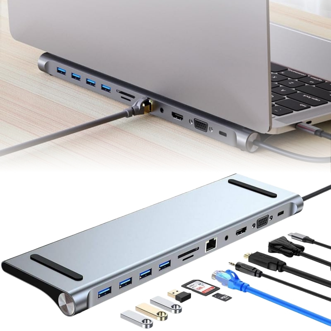 11 σε 1 Docking Station - Βάση Λάπτοπ Type-C με 4 Θύρες USB, 1 Type-C, HDMI, VGA, Card Reader, Ethernet & Audio Jack 3,5 mm - Andowl