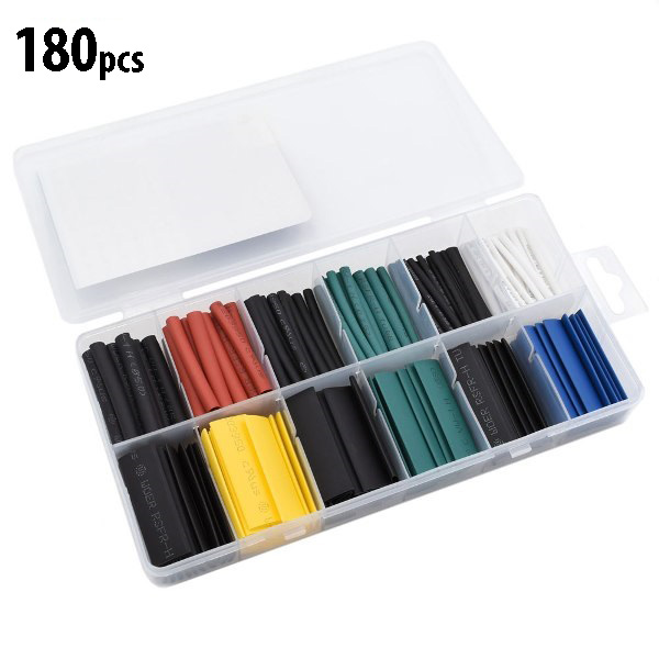 Θερμοσυστελλόμενα μονωτικά καλωδίων σε διάφορα χρώματα και μεγέθη. Μεγάλο Σετ 180 τεμαχίων μέσα σε ταμπακιέρα - κασετίνα για να τα κρατάτε οργανωμένα.