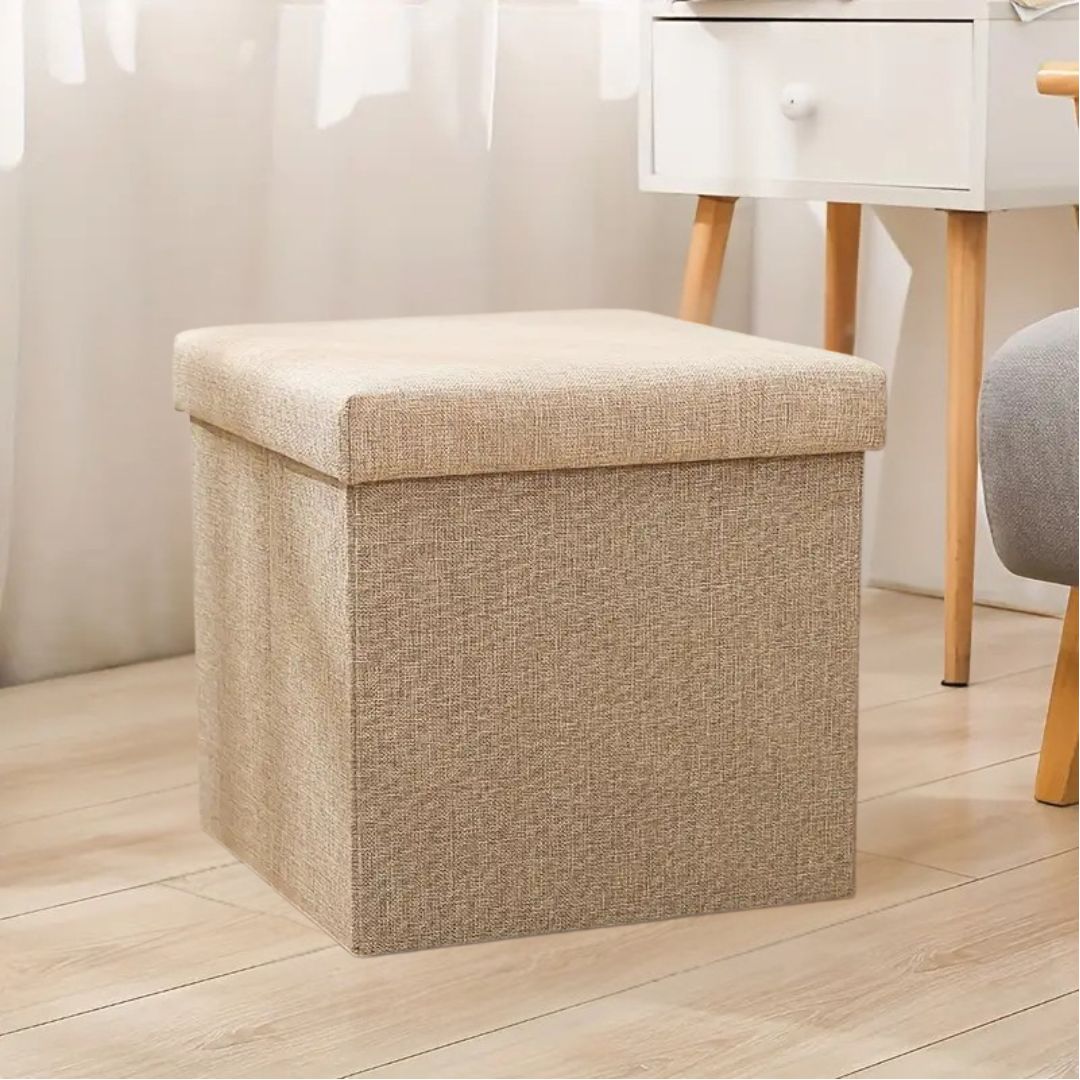 2 σε 1 Αναδιπλούμενο Σκαμπό - Κουτί Αποθήκευσης με Υφασμάτινη Επένδυση - 38 x 38 x 35 cm - Μπεζ