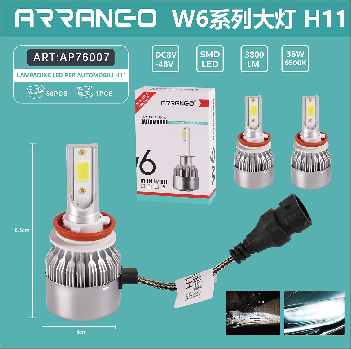 2x ARRANGO Λαμπτήρες LED SMD Φώτα Πορείας H11 36W 6500K W6 3800Lm