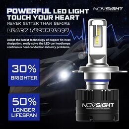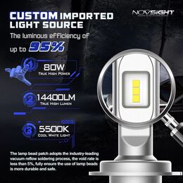 2x NOVSIGHT® Aδιάβροχοι Λαμπτήρες LED H4 Φώτα Πορείας Λευκού Φωτισμού 360° 80W 14400LM 5500K A500 N16