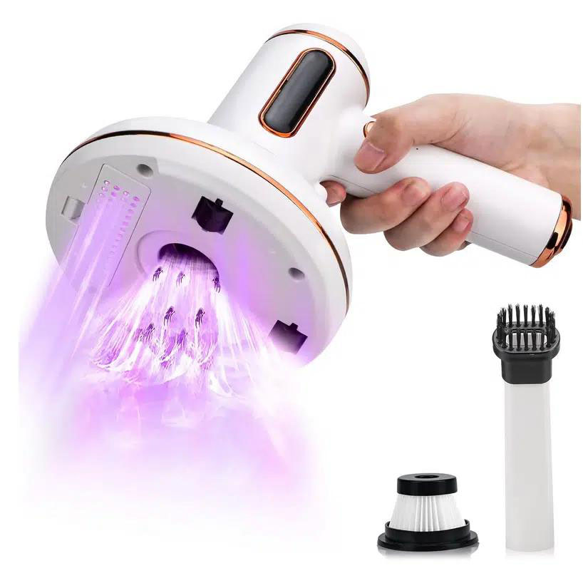 Επαναφορτιζόμενη, ασύρματη και φορητή 3 σε 1 συσκευή αφαίρεσης ακάρεων σκόνης, αποστείρωσης UV και ηλεκτρικό σκουπάκι.