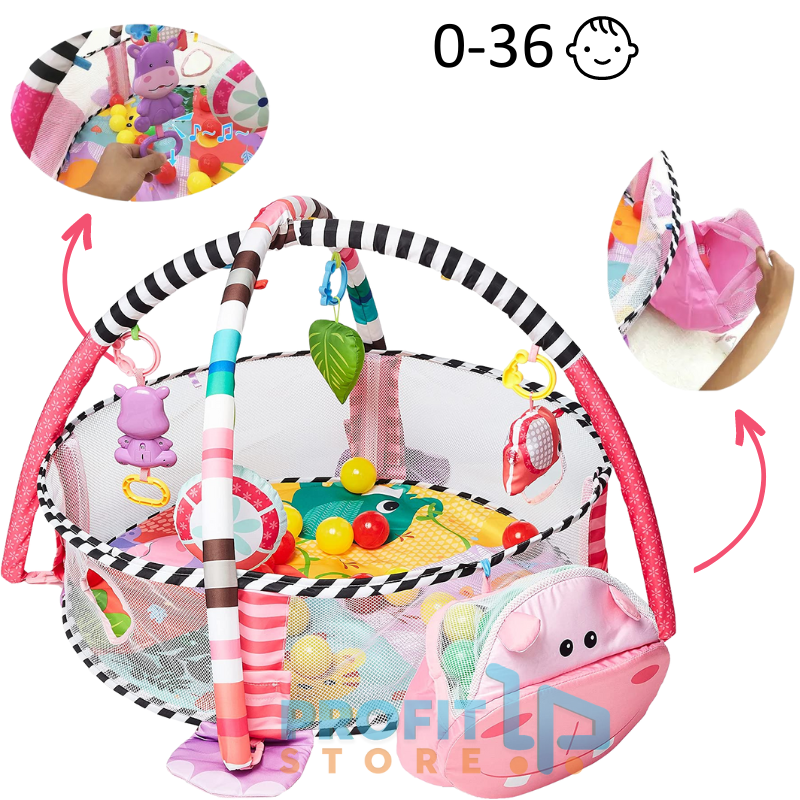 - 1 x 3 σε 1 Βρεφικό Γυμναστήριο Δραστηριοτήτων Με 30 Μπάλες - Ροζ Ιπποπόταμος - 0 έως 36 Μηνών - 55.5x71x21