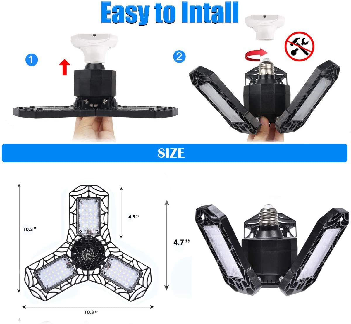 Το υψηλής ποιότητας τριπλό αναδιπλούμενο φωτιστικό ανακλαστήρας γκαράζ εκπέμπει απίστευτη ποσότητα φωτός χάρη στον καινοτόμο σχεδιασμό του. Το φως φτάνει σε κάλυψη 360°, έτσι ώστε κάθε γωνιά του γκαράζ ή του εργαστηρίου σας να φωτίζεται επαρκώς.