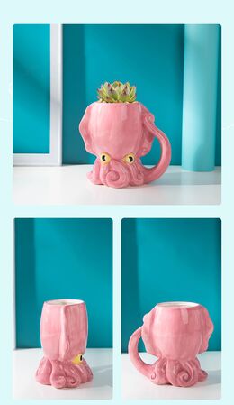 Πρωτοποριακή κεραμική τρισδιάστατη Ροζ κούπα Χταπόδι για να απολαύσετε τα αγαπημένα σας ροφήματα.