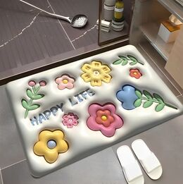 3D Ανάγλυφο Μαλακό Πατάκι Μπάνιου - Αντιολισθητικό & Αδιάβροχο - Happy Life - 38 x 58 cm