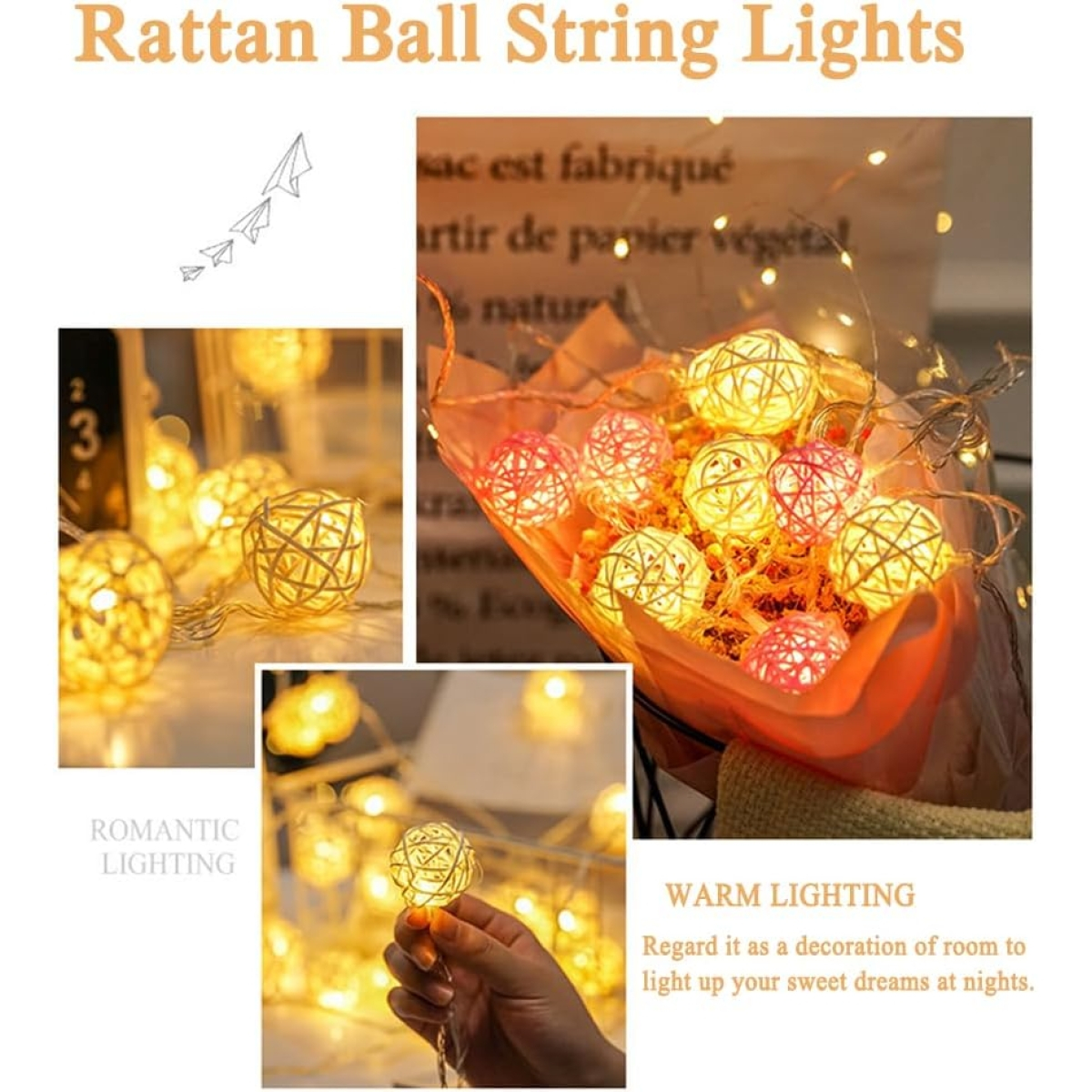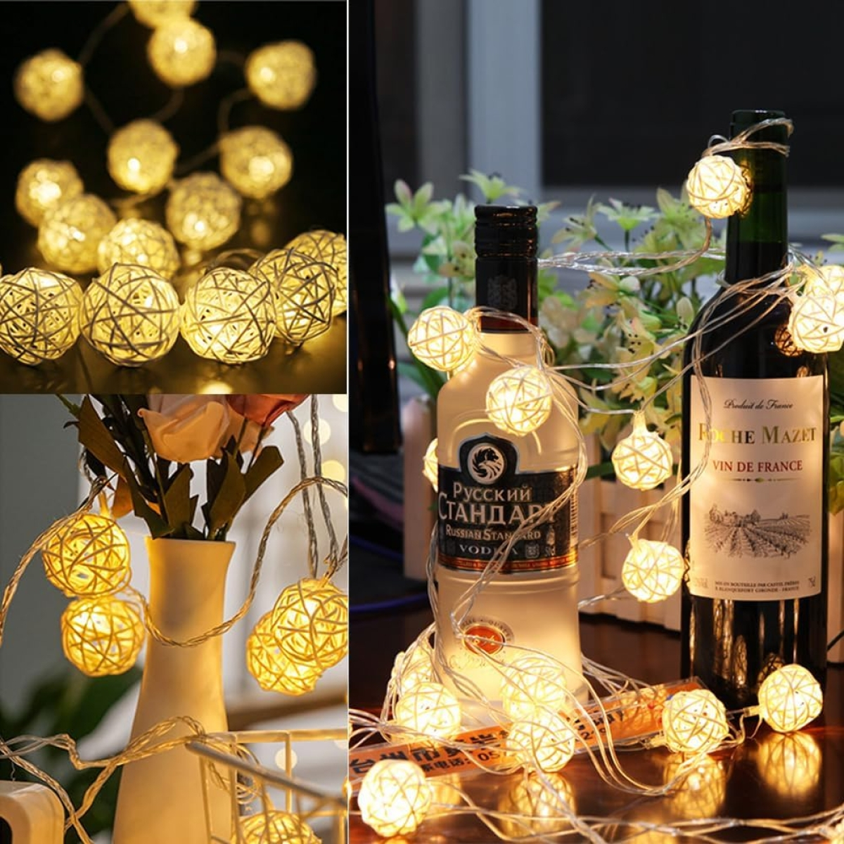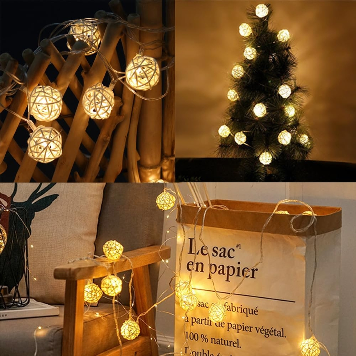 Η γιρλάντα LED με μπάλες ρατάν χαρίζει μια ζεστή, φυσική και ρομαντική λάμψη σε κάθε χώρο.