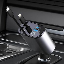 4 σε 1 Φορτιστής Αυτοκινήτου με Θύρες USB, USB-C & Καλώδιο Φόρτισης Lightning και Type-C - 2,4A 120W
