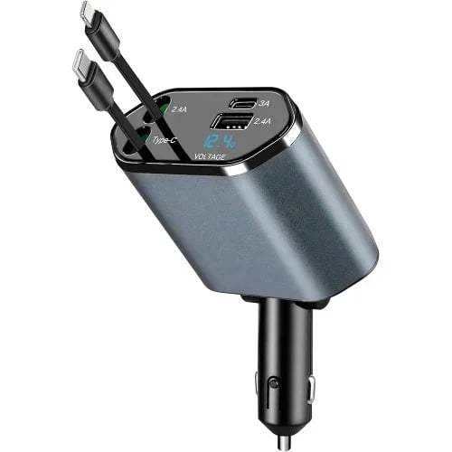 ✔️Με ισχύ 120W, τέσσερις εξόδους (USB, USB-C, Type-C και Lightning) και δύο ενσωματωμένα πτυσσόμενα καλώδια 80cm, επιτρέπει τη συγχρονισμένη φόρτιση πολλών συσκευών, είτε πρόκειται για iPhone, Android, tablet ή GPS.