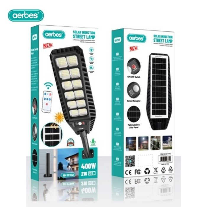 Ο 400W αδιάβροχος ηλιακός προβολέας δρόμου Aerbes AB-TY240 παρέχει εξαιρετικά ισχυρό φωτισμό, μεγάλη αυτονομία και εύκολη εγκατάσταση χωρίς καλωδίωση.