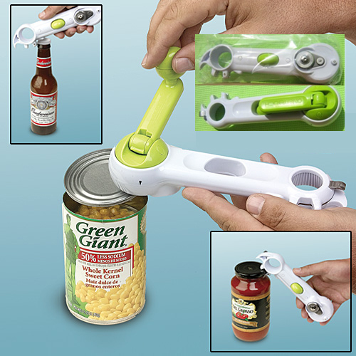 6 Way Opener, Πολυανοιχτήρι που θα γίνει το δεξί σας χέρι, όχι μόνο στην κουζίνα σας αλλά και στο ταξίδι, το εξοχικό, το camping. Ανοίγει κονσέρβες χωρίς να αφήνει προεξοχές γύρω-γύρω, ανοίγει καπάκια με μία κίνηση, μπουκάλια, όλα εύκολα και γρήγορα.