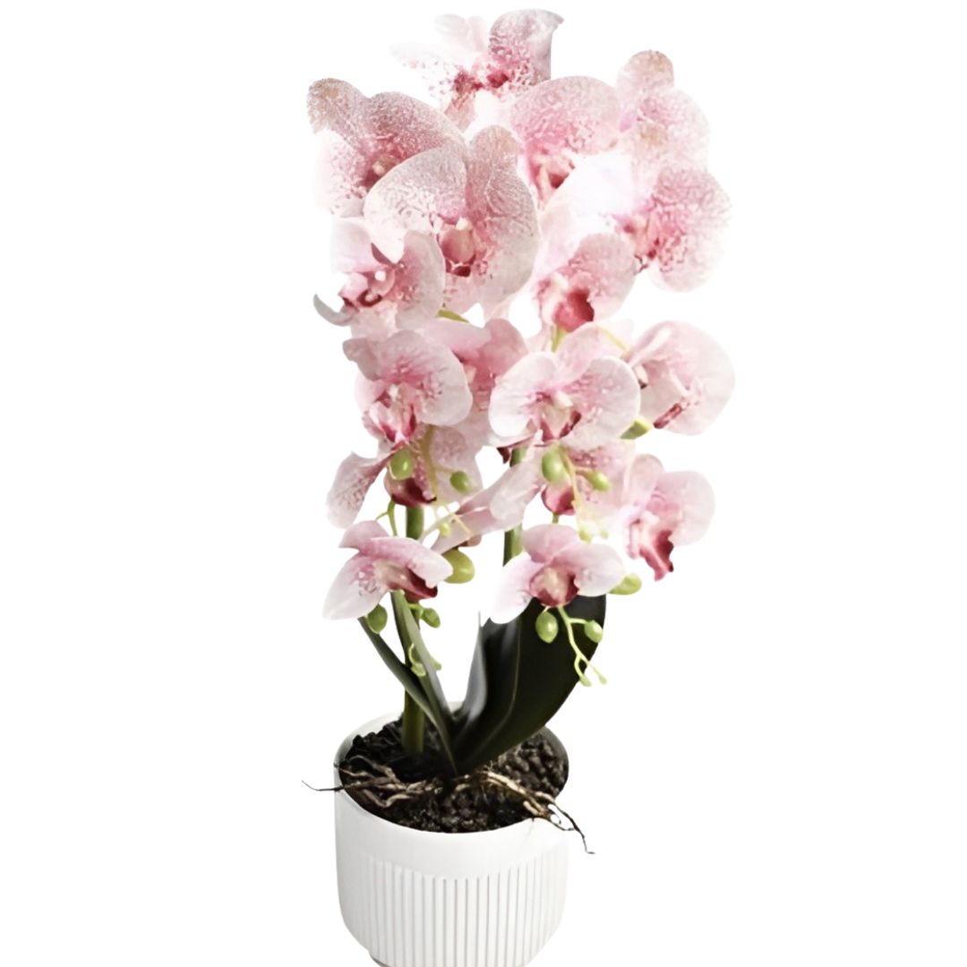 65cm Τεχνητό Διακοσμητικό Φυτό Λευκή Ορχιδέα σε Γλάστρα