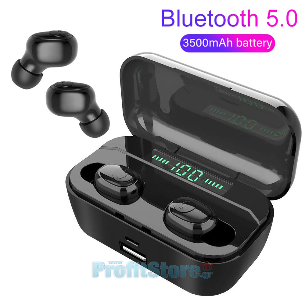 Νέας γενιάς αδιάβροχα ασύρματα ακουστικά bluetooth, με κομψή θήκη μεταφοράς και φόρτισης, έξοδο USB για να φορτίζετε το κινητό σας και να την χρησιμοποιείτε και ως Power bank!