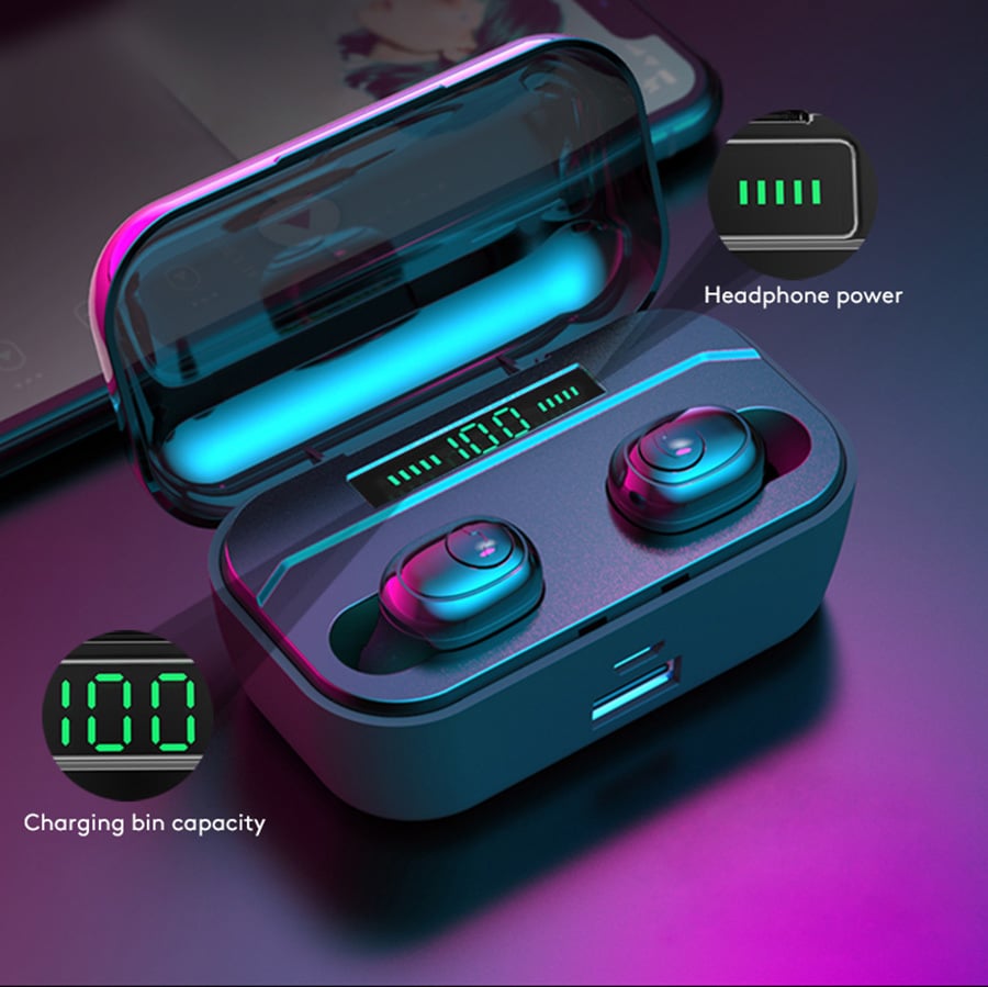 Αδιάβροχα Bluetooth Ακουστικά in-Ear με Θήκη Φόρτισης, Powerbank USB Φορητή Μπαταρία & LED Οθόνη - Handsfree Wireless Stereo Earphone