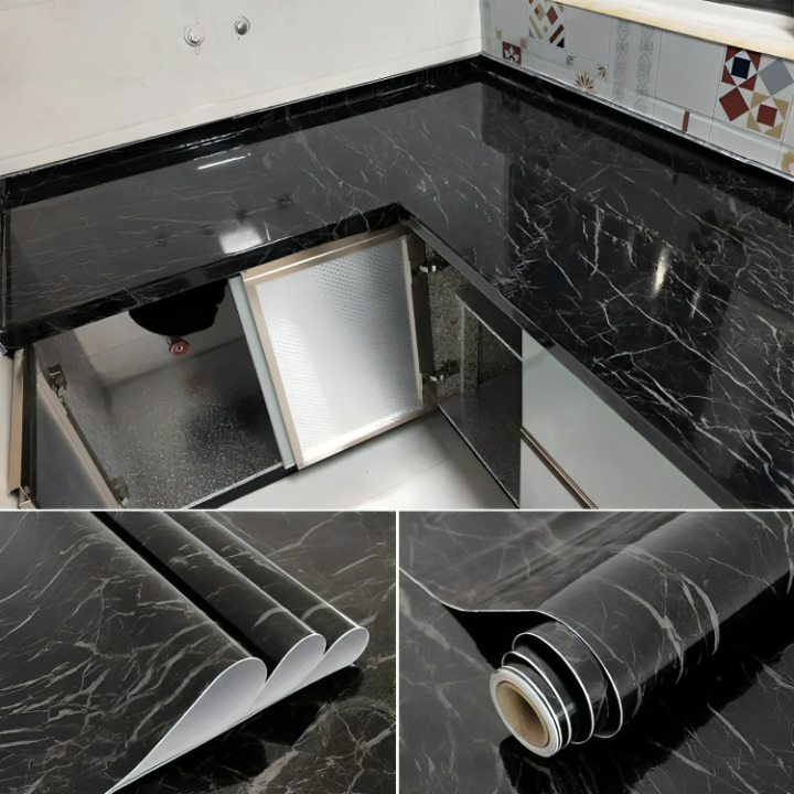Αδιάβροχη Αυτοκόλλητη Ταπετσαρία Τοίχου - Μαύρο Μάρμαρο - Ρολό 200 x 45cm