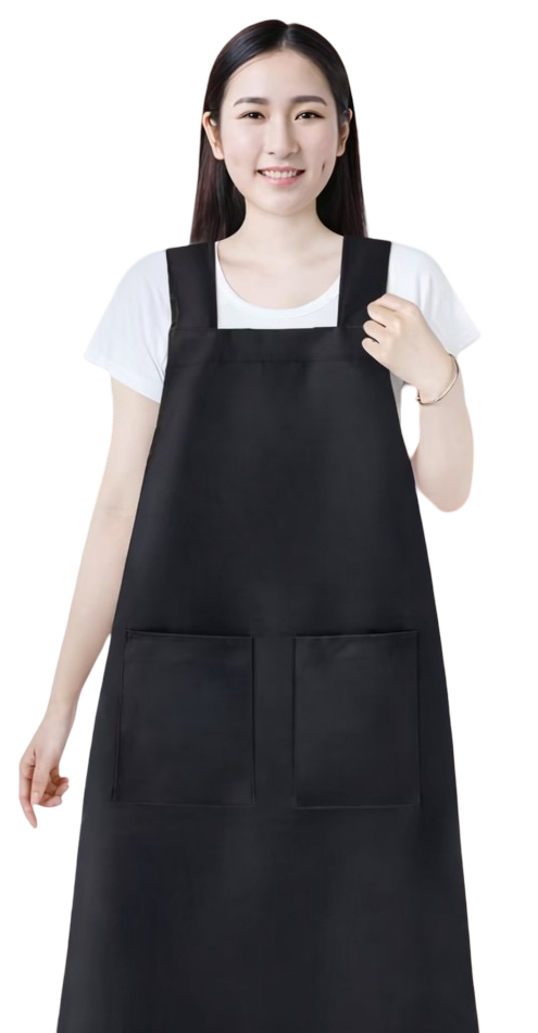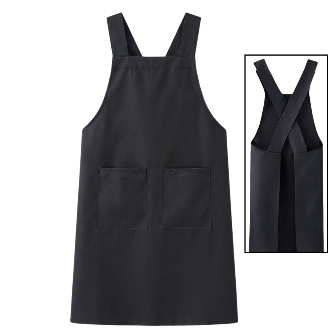 Αδιάβροχη Ποδιά Κουζίνας με Ανθεκτικότητα στο Λάδι και Χιαστί Τιράντες - Μαύρη