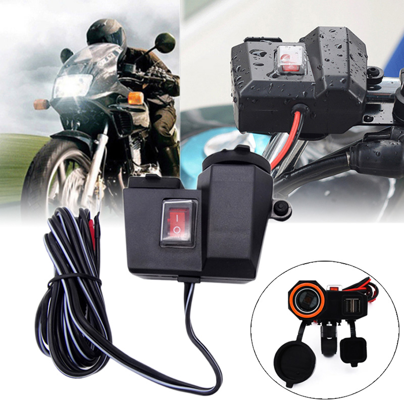 Αδιάβροχη Πρίζα Μοτοσυκλέτας 12V με Υποδοχή Αναπτήρα - 2 Θύρες USB & Διακόπτη - Μαύρο
