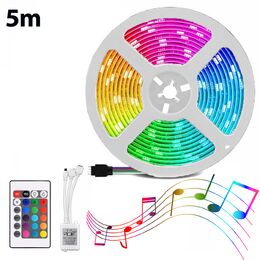 Αδιάβροχη Ταινία LED 5m RGB που Παίζει με την Μουσική - Φωτορυθμικό SMD5050 220V 30LED,2.4W,m & Χειριστήριο - Αυτοκόλλητος Φωτισμός