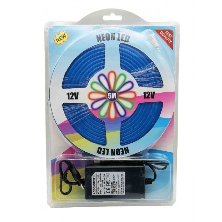 Η αδιάβροχη ταινία LED Neon Flex 12V με μπλε φως και μήκος 5 μέτρων είναι ιδανική για τη δημιουργία εντυπωσιακού φωτισμού σε εσωτερικούς και εξωτερικούς χώρους.