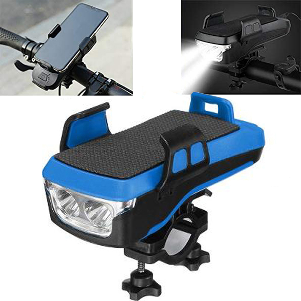 Αδιάβροχη USB Επαναφορτιζόμενη Βάση Κινητού Powerbank, Κόρνα & Φως Πορείας - Φακός LED 800lm Ποδηλάτου - LED Bicycle Horn Lamp Μπλε