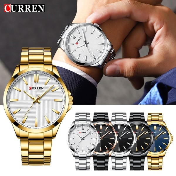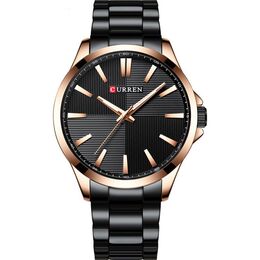 Ανδρικό αδιάβροχο ρολόι Curren με μαύρο μπρασελέ από ανοξείδωτο ατσάλι, μεταλλική ροζ-χρυσή κάσα και μαύρο καντράν με ροζ-χρυσές λεπτομέρειες.