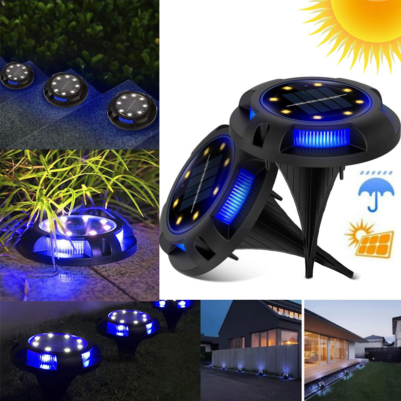 Αδιάβροχο Επιδαπέδιο Ηλιακό 8 RGB LED Φωτιστικό Κήπου με Πάσσαλο & Φωτοκύτταρο Σετ 4τμχ