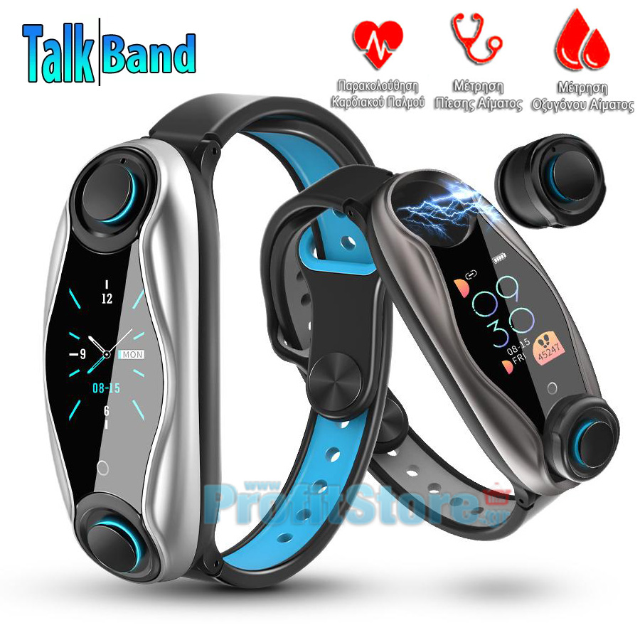 Αδιάβροχο Ρολόι SmartWatch & Ακουστικά Bluetooth TalkBand Activity Tracker με Μέτρηση Καρδιακών Παλμών, Πιεσόμετρο, Οξύμετρο, Βημάτων, Ποιότητας Ύπνου