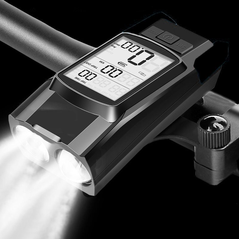 Αδιάβροχο Ταχύμετρο 4 σε 1 με Φώτα Πορείας 800Lm, Κόρνα 120db & Χρονόμετρο - Επαναφορτιζόμενος Φακός LED με 4 Ρυθμίσεις Φωτισμού Μαύρο
