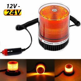 Αδιάβροχος 12V - 24V Φάρος Αυτοκινήτου με Μαγνητική Βάση & Στροβοσκοπικό Φώς Led για Αυτοκίνητο, Φορτηγό, Ρυμουλκό Σκάφους, Εκχιονιστικά Μαύρο