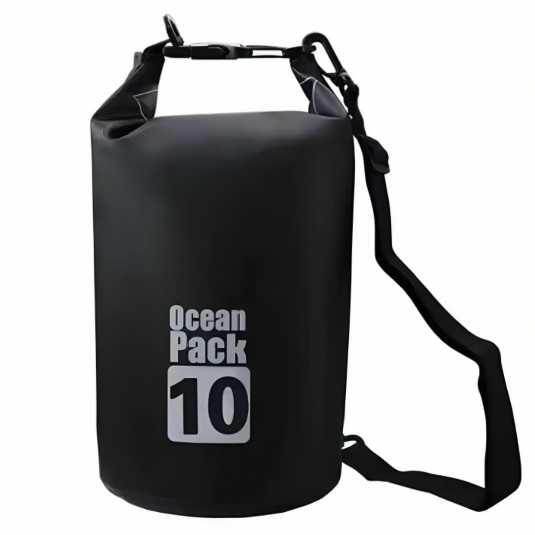 Αδιάβροχος Αεροστεγής Σάκος , Τσάντα 10L με Λουρί Ώμου που Επιπλέει στο Νερό Ocean Pack - Μαύρο