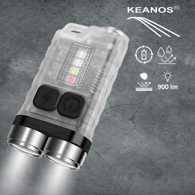 Αδιάβροχος Επαναφορτιζόμενος Φακός 900lm με 10 Λειτουργίες Φωτισμού - Με Λευκό, Κόκκινο & UV Φως - KEANOS Carribean EDC - Διάφανο