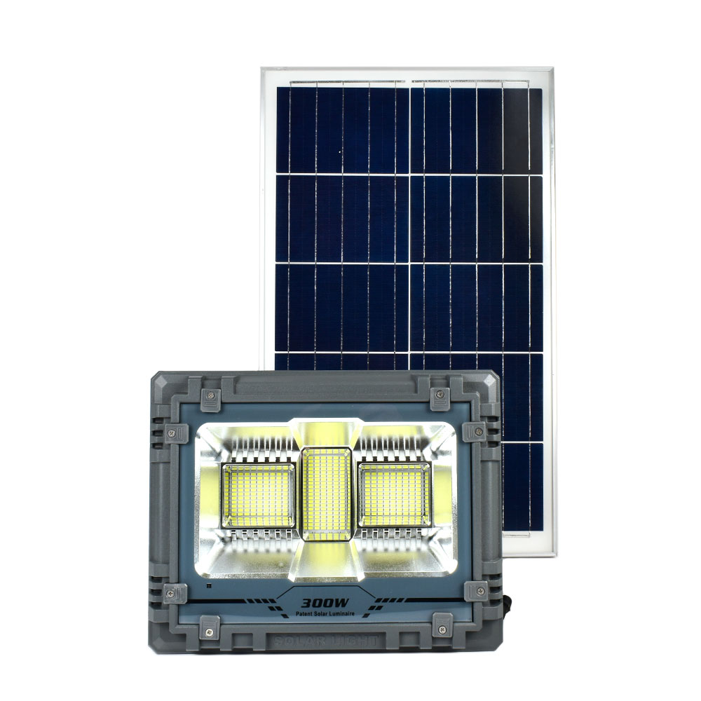 Αδιάβροχος Επαναφορτιζόμενος Ηλιακός Προβολέας Αλουμινίου 300W 381 LED με Τηλεχειρισμό & Χρονοδιακόπτη