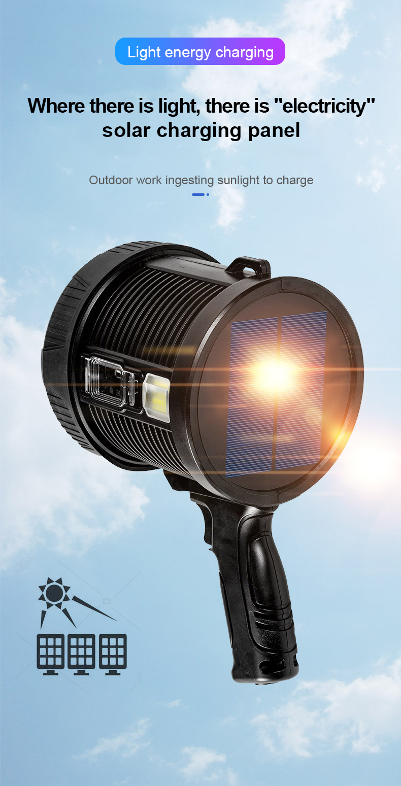 Φορητός ηλιακός προβολέας έκτακτης ανάγκης, ιδανικός για εκδρομές σε δάση και γενικότερα μέρη με έλλειψη φωτισμού.