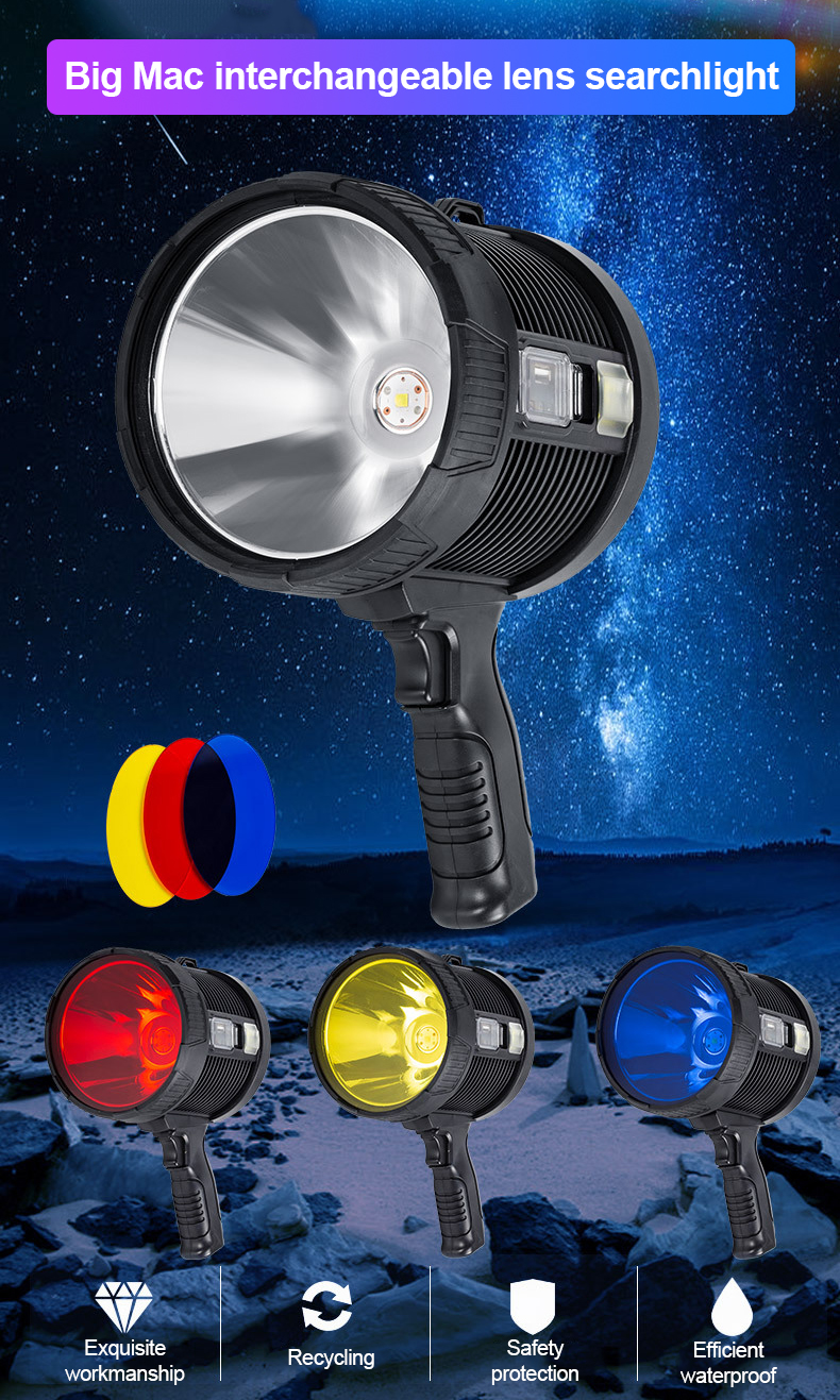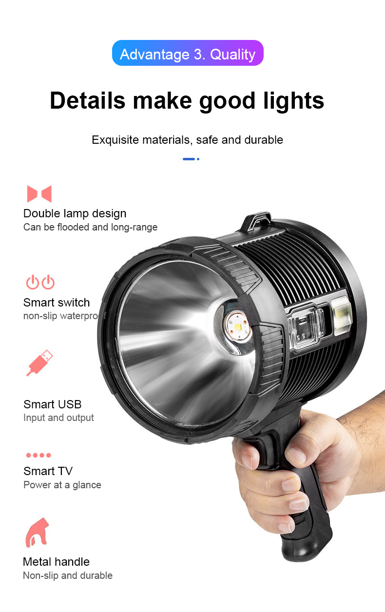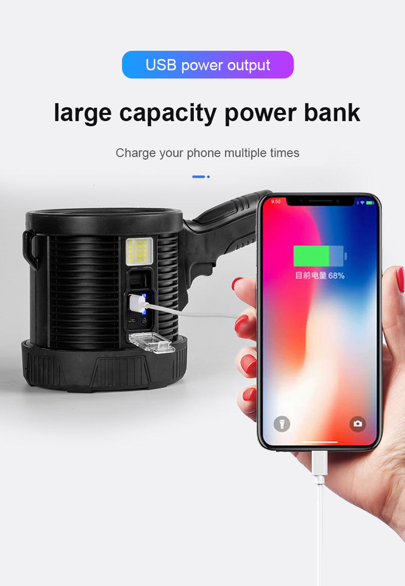 Αδιάβροχος Φορητός Ηλιακός Προβολέας LED Χειρός με 3 Χρώματα Έκτακτης Ανάγκης Υψηλής Απόδοσης Power Bank Επαναφορτιζόμενος USB