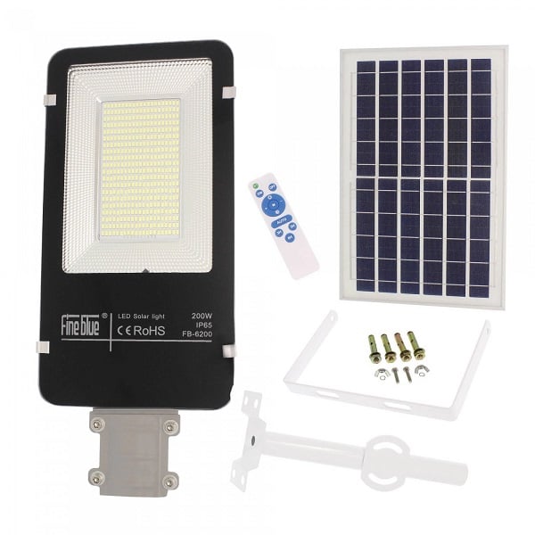 Αδιάβροχος Ηλιακός Επαναφορτιζόμενος Προβολέας Δρόμου 200W 420 LED με Φωτοβολταϊκό Πάνελ,Τηλεχειριστήριο και Χρονοδιακόπτη-Solar Light Fineblue FB-6200
