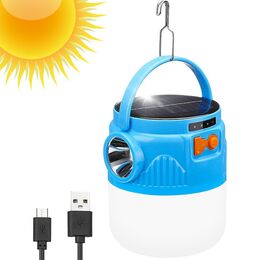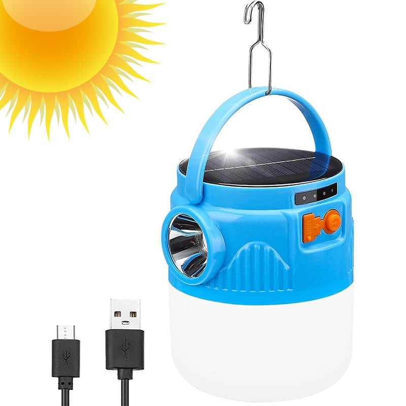 Αδιάβροχος Ηλιακός Φακός , Φανάρι , Φωτιστικό Camping Επαναφορτιζόμενο USB LED 1200lm & PowerBank Φόρτισης Συσκευών Μπλε