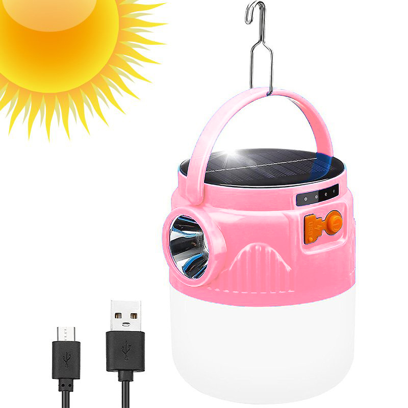Αδιάβροχος Ηλιακός Φακός , Φανάρι , Φωτιστικό Camping Επαναφορτιζόμενο USB LED 1200lm & PowerBank Φόρτισης Συσκευών Ροζ
