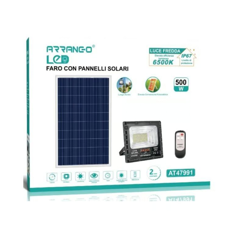 Αδιάβροχος Ηλιακός Προβολέας 500W με Ηλιακό Πάνελ Arrango
