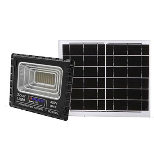 Αδιάβροχος Ηλιακός Προβολέας Αλουμινίου 40W GD-8840L με Φωτοβολταϊκό Πάνελ, Τηλεκοντρόλ και Χρονοδιακόπτη- Solar Panel