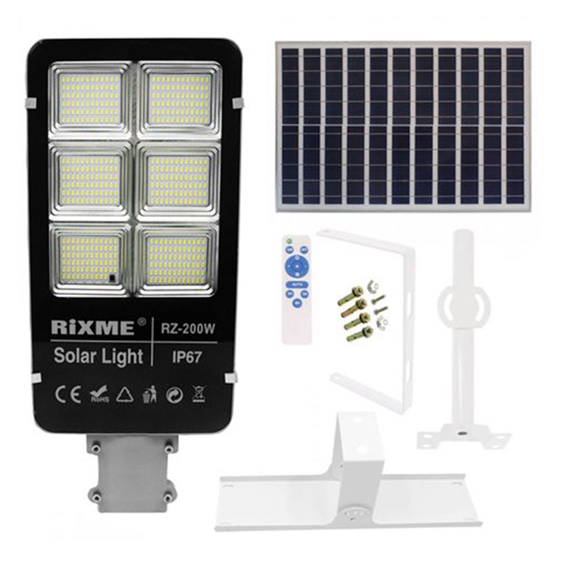 Αδιάβροχος Ηλιακός Προβολέας Φωτιστικό Δρόμου LED 200W 34400LM με Bάση Στήριξης και Τηλεχειριστήριο