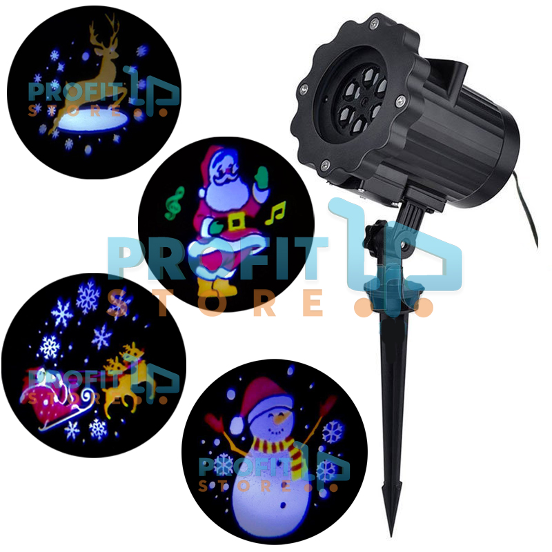 Αδιάβροχος Προτζέκτορας με 4 Animated Slides Ζωντανής Κίνησης - Νυχτερινός Διακοσμητικός Χριστουγεννιάτικος Φωτισμός - Προβολέας