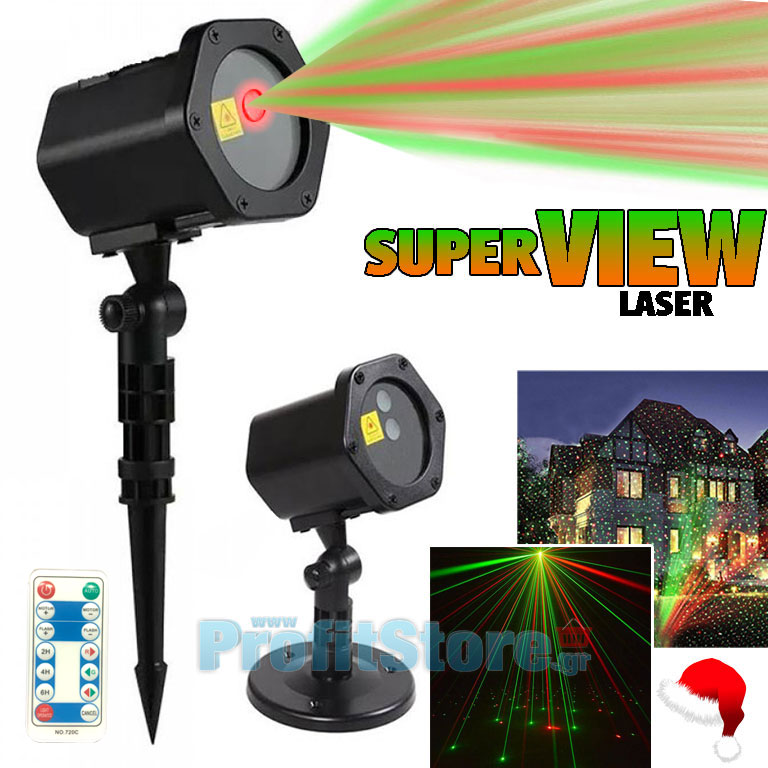 Αδιάβροχος Προβολέας SuperView Laser & Xmas Σχέδια - Διακοσμητικός Χριστουγεννιάτικος Νυχτερινός Φωτισμός - Προτζέκτορας με Τηλεκοντρόλ