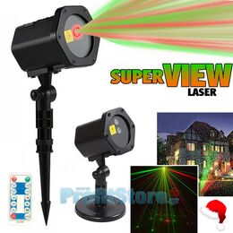 Αδιάβροχος Xmas Προβολέας SuperView Laser + Σχέδια Πράσινο / Κόκκινο - Διακοσμητικός Χριστουγεννιάτικος Νυχτερινός Φωτισμός - Προτζέκτορας με Τηλεχειριστήριο - Christmas Light