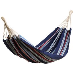 Μία βαμβακερή αιώρα δυο ατόμων χωρίς ξύλο, ιδανική για χαλάρωση σε camping είτε οπουδήποτε αλλού.