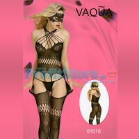 Ολόσωμο Sexy Καλσόν με Διάτρητα Σχέδια με Χιαστή στο Μπούστο VAQUA-81016 - Sexy Lingerie Bodystockings. Ελαστικό ONE SIZE. Σε μαύρο χρώμα.
