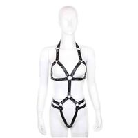 Ρυθμιζόμενο γυναικείο PU δερμάτινο harness με ζώνες μηρού και μεταλλικούς κρίκους – ιδανικό για clubwear, αισθησιακές εμφανίσεις και BDSM στιλ.