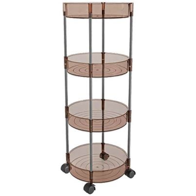 Ακρυλική Τροχήλατη - Ραφιέρα - Καρότσι - Βάση Οργάνωσης 4 Επιπέδων με Ροδάκια, Τρόλεϊ Οργάνωσης - Διακόσμησης 32x32x91εκ - Καφέ