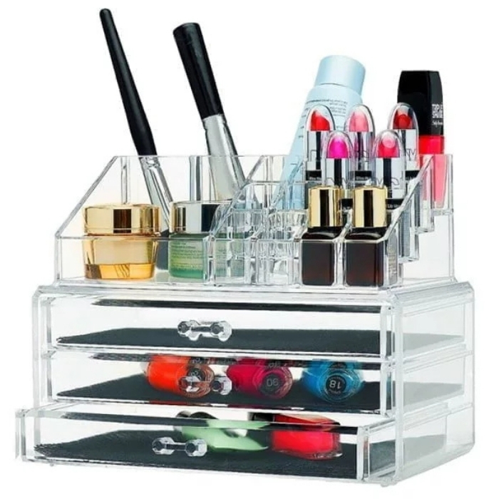 Ακρυλική Βάση Οργάνωσης Καλλυντικών Πολλαπλών Θέσεων με 3 Συρτάρια